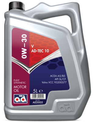 AD-TEC 10 0W/30 V is a fully synthetic engine oil formulated to meet the performance demands of modern petrol and diesel engines. AD-TEC 10 0W/30 V is a blend of the very latest in base oil and additive technology, designed for extended drain performance, especially suited for modern Volvo engines both petrol and diesel.