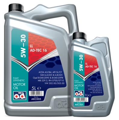 AD-TEC 16 5W/30 LL is a fully synthetic engine oil formulated using the most advanced additive technology to produce a fuel efficient engine oil that has excellent high and low temperature performance and exceptional long term anti wear characteristics. Suitable for use in petrol & diesel engines where specified including: Vauxhall, Opel, Mercedes, BMW and Saab, Renault & VAG group engines