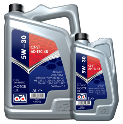 AD-TEC 48 5W-30 C3-ST is a fully Synthetic engine oil specially formulated for certain Stellantis group DV5R & EB2 engine types. The product helps prevent occurrences of LSPI (Low Speed Pre-Ignition) whilst offering excellent engine component protection, emission control and fuel economy.