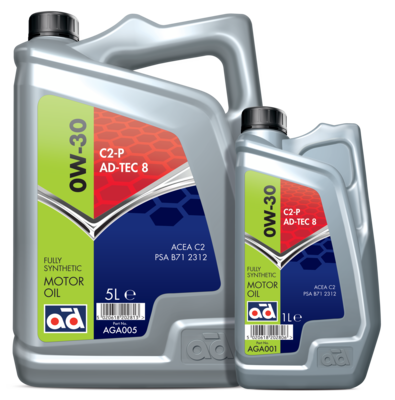 AD-TEC 0W/30 C2-P is a fully synthetic mid-SAPS engine oil specially formulated to meet the very latest specifications and fuel efficiency targets required by Peugeot/Citroen power units including Blue HDi and Pure Tech engine types. Suitable for use in Petrol and Diesel engines where specified.