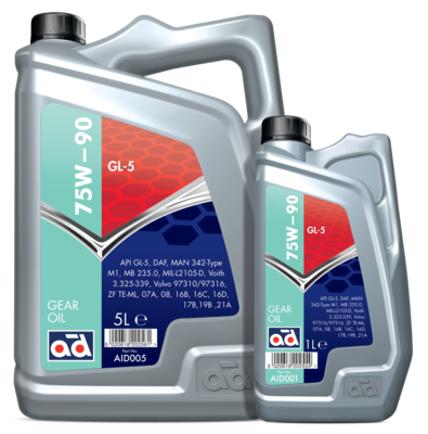 AD 75W/90 GL-5 is a semi synthetic, heavy duty, multipurpose gear oil manufactured from high quality synthetic base oils and additives to provide a gear oil suitable for today's modern gearboxes. EP 75W/90 has outstanding load carrying capacity which is essential for shock/load, high/torque and high/speed service operation.